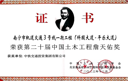 • 斬獲雙料大獎(jiǎng)!中鐵交通南寧軌道交通3號線項(xiàng)目再獲詹天佑獎(jiǎng)